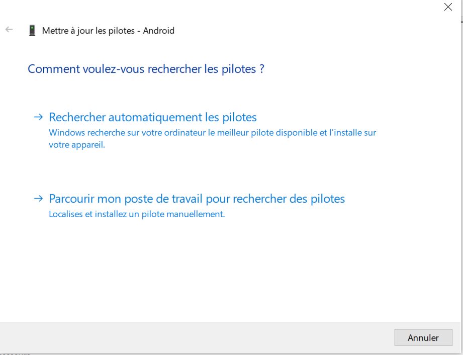 Si, une fois branché et en mode fastboot(le mode après le reboot avec la touche volume Down enfoncer), votre téléphone n’est pas reconnu, c’est un problème de drivers